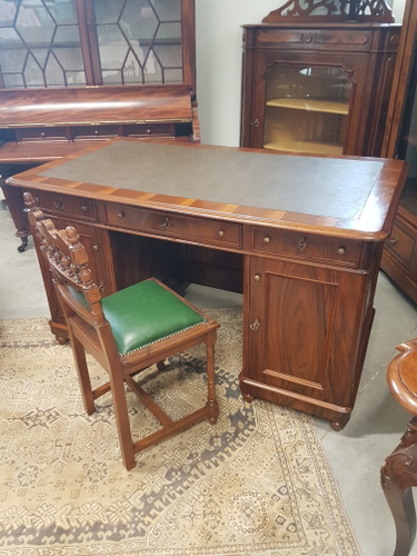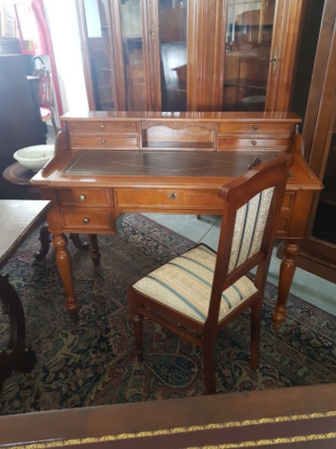 con cassettiera e piano a tiretto con pelle verde con profili dorati dei primi del Novecento